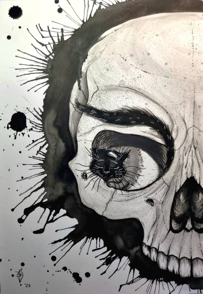 Meouw-mento mori by Alisa Vos (Original Drawing)