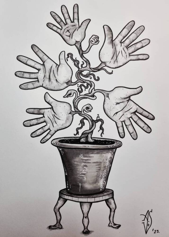All my works are unique and mainly made with ink, rainwater and other mediums.