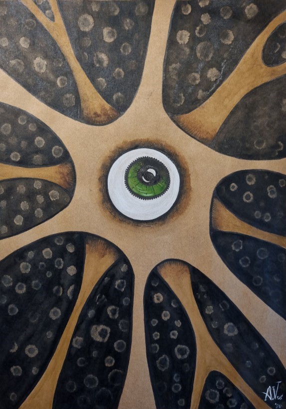 All my works are unique and mainly made with ink, rainwater and other mediums.