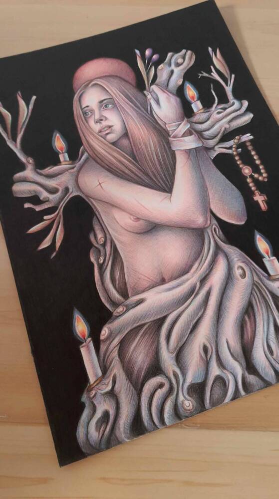 The witch and the rosary by Antonio De Blasi (Original Drawing)
