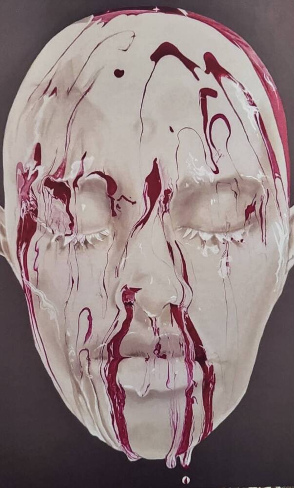 Surreal Raspberry ripple ice cream dripping face