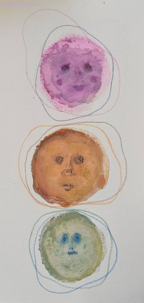 Watercolor and acrylic on a stretched canvas, 7×14 inches.