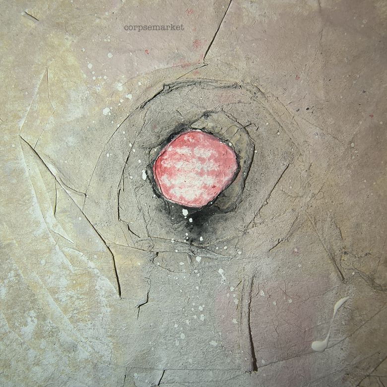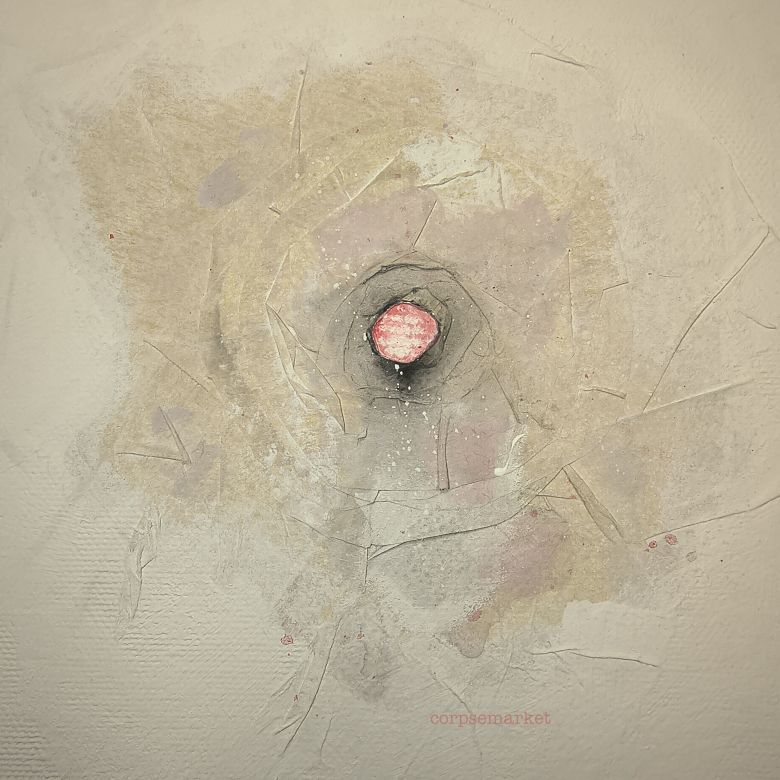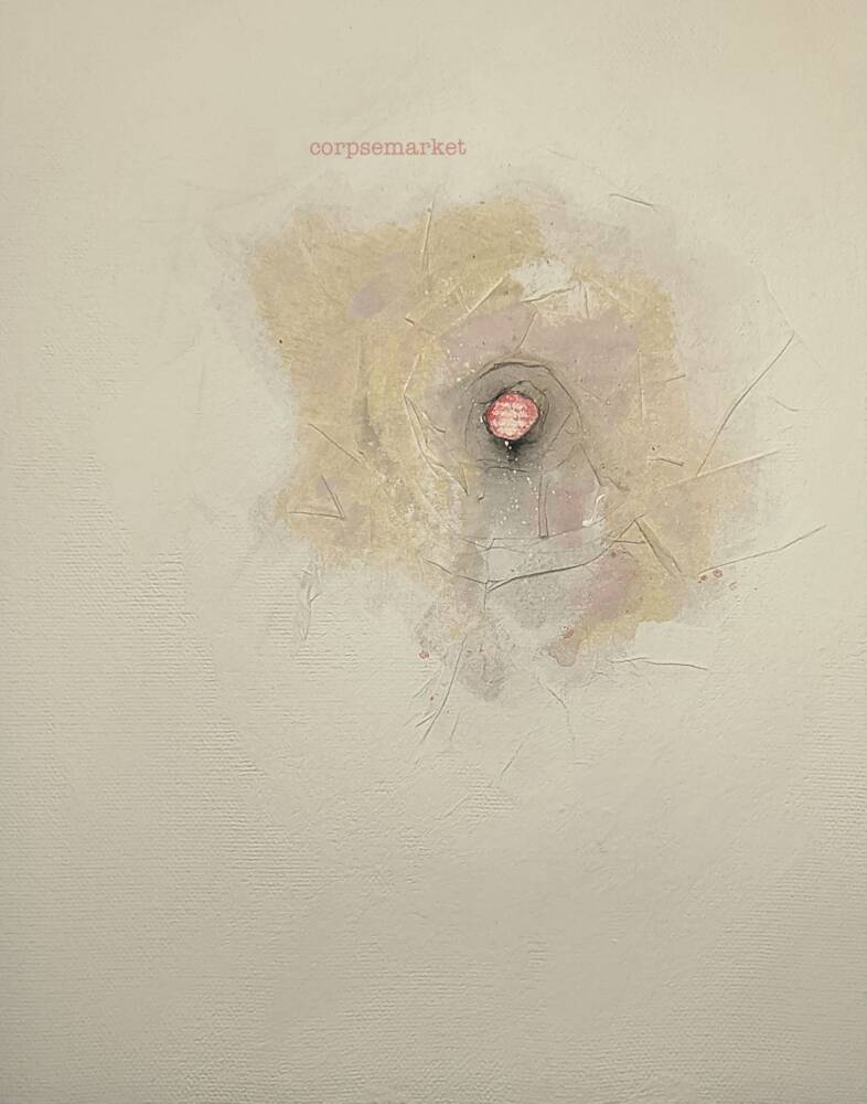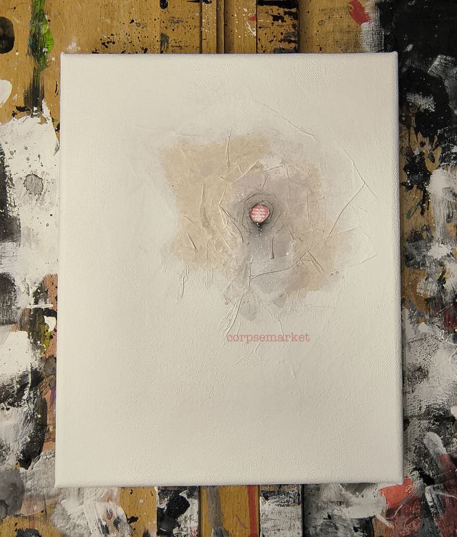 Mixed media, acrylic and paper on a stretched canvas, 8×10 inches.