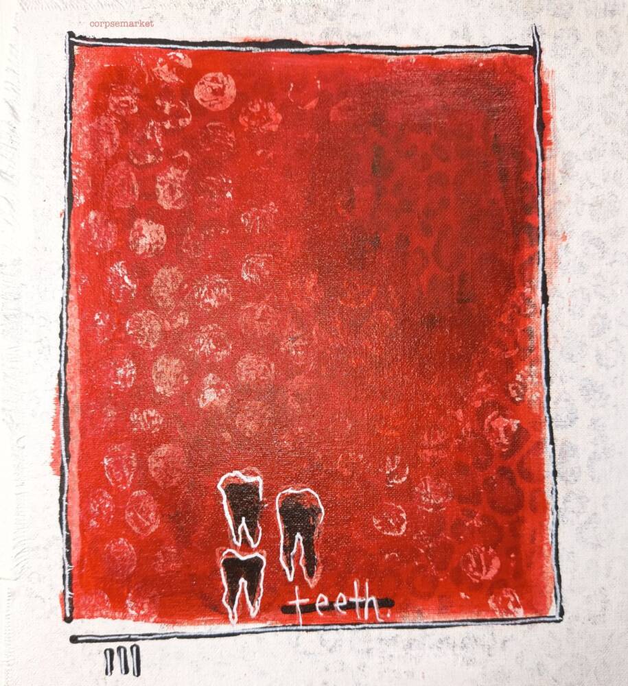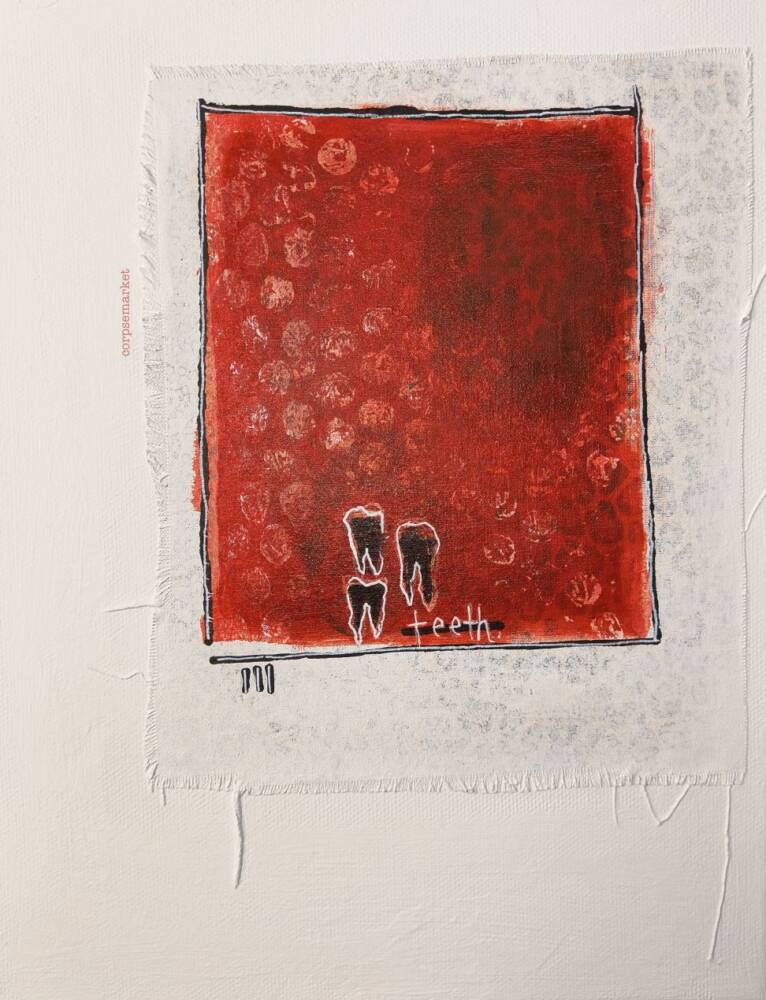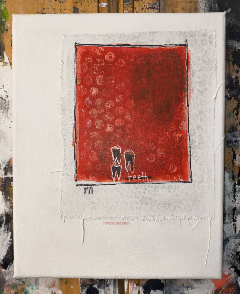 Mixed Media, acrylic and fabric on a stretched canvas, 8×10 inches.