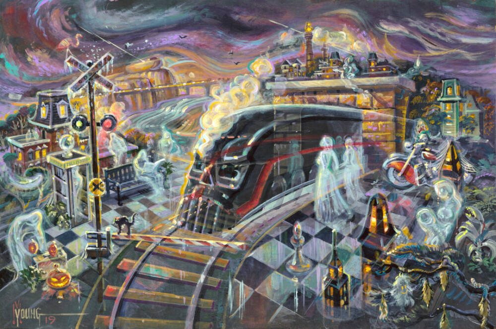 Our local depot has been taken over by creepy customers, Even the train is possessed. Happy Trails!