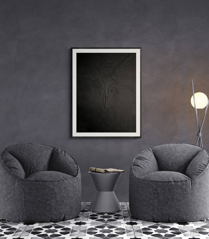 The second addition the latest in the “Blackened” series and another, albeit unique, revelation in the occult essence and ideology attributed to the Baphomet; the lord of inspired creation and a spirited guide to the underworld. The ‘black on black’ style lends itself to change, based on location and (guided) influence of light as it turns any keep to a ritualistic space in sound devotion to the esoteric, aesthetic philosophy and the arts alike.