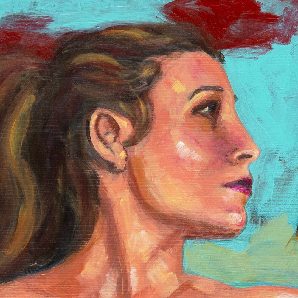 On her arm perches a vivid, aggressive hawk, its sharp features and wild nature providing a stark contrast to the delicate nudity of her form. Although her body is petite, I have imbued it with an intense sexual charge, turning her vulnerability into a source of undeniable power. Through the brushwork of her skin and the piercing gaze of the predator, I invite the viewer into a dark fantasy where the line between the tamer and the tamed is blurred. This painting is a celebration of that raw, primal connection, a fusion of cinematic nostalgia and contemporary eroticism that explores the beauty found in the most disturbing contrasts.