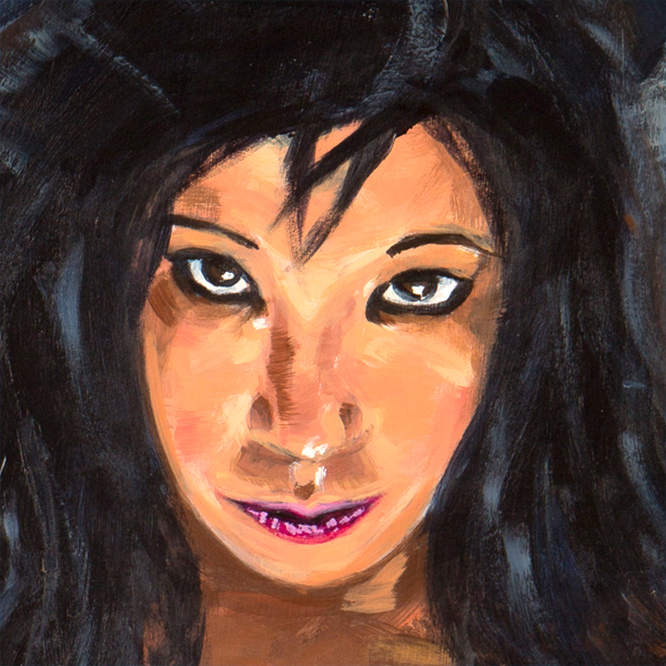 Executed in acrylic on board, the high contrast shadows and her piercing gaze are designed to make the viewer feel the weight of her presence. This piece is a tribute to real-world domination, where humiliation and discipline are elevated to a dark, transcendental art form.