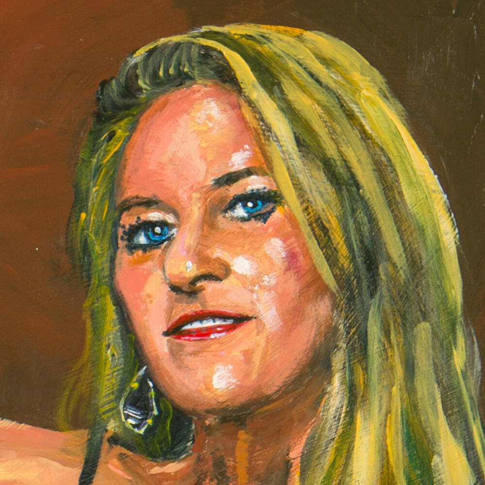 In “Secret Pearl,” I explore the raw and unfiltered power of the female gaze. This painting, rendered in expressive acrylic on board, is a manifesto of uncompromising exhibitionism. It is a tribute to the woman who does not merely exist to be seen, but who commands the act of being watched.