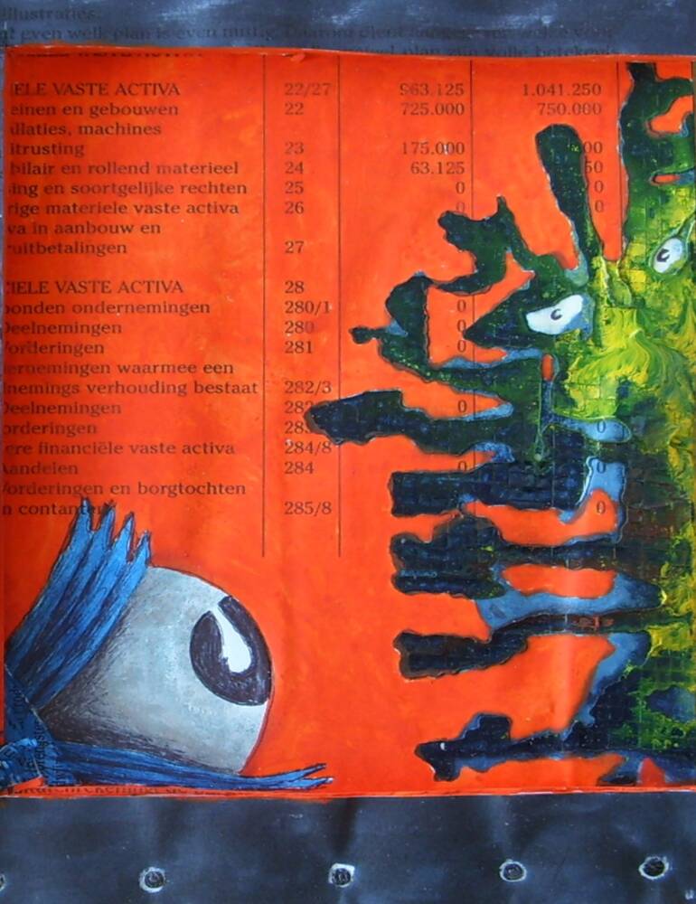 I used old books and reshaped them by cutting, sketching, painting, writing and pasting objects in them. These books are too complex and personally to be showed or sold.