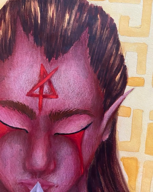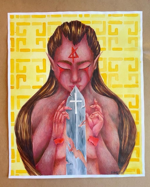 Created on mix media paper with; watercolor, gouache, color pencils, and ink.