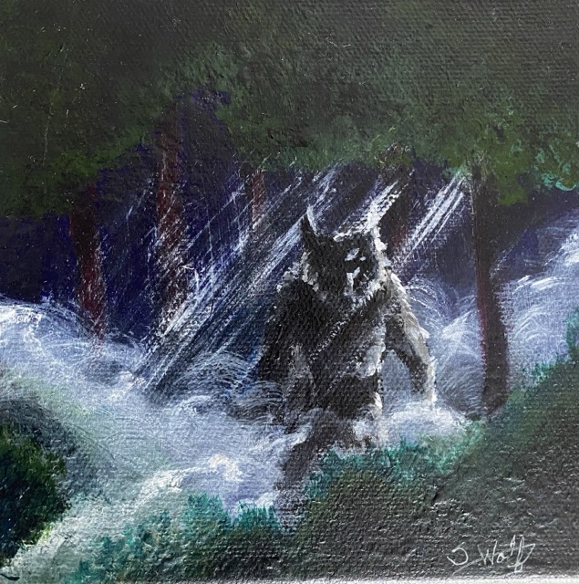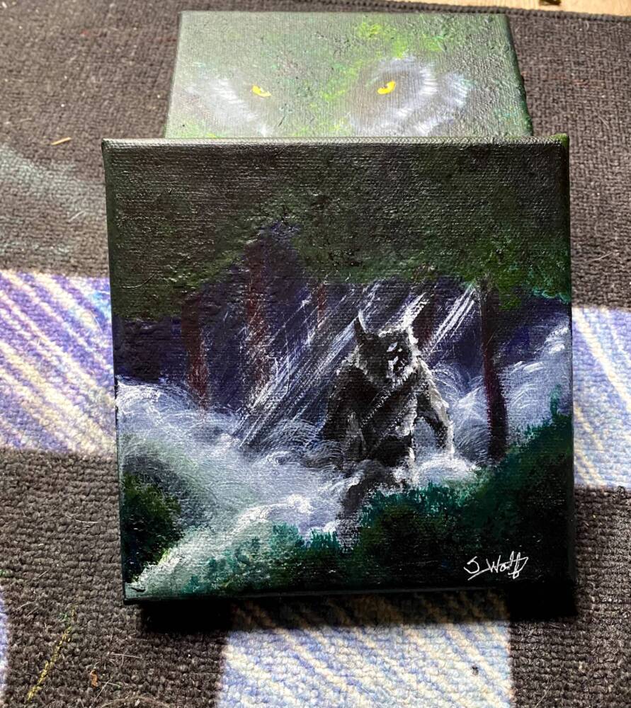 Mini werewolf acrylic painting.
