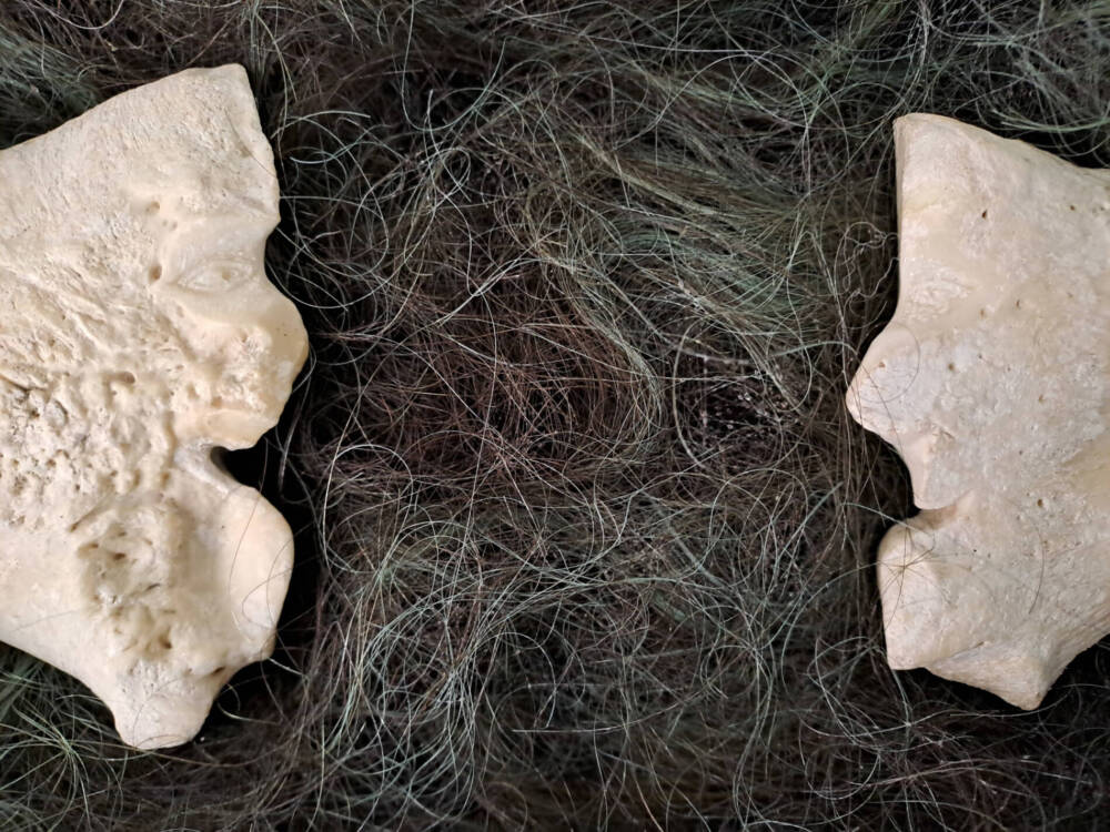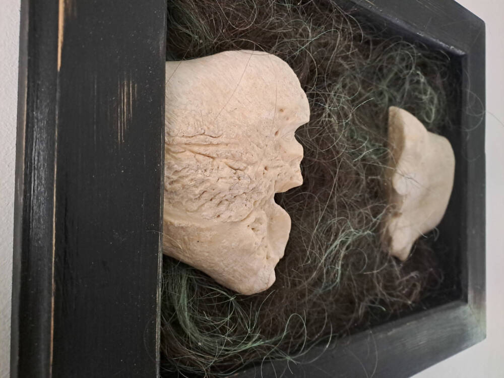 The entangled treads of hair represent all of that, a constant background in their lives, whatever the distance between them, whatever they say – even if all of that is constantly nourrishing that space, filling it, modifying it.