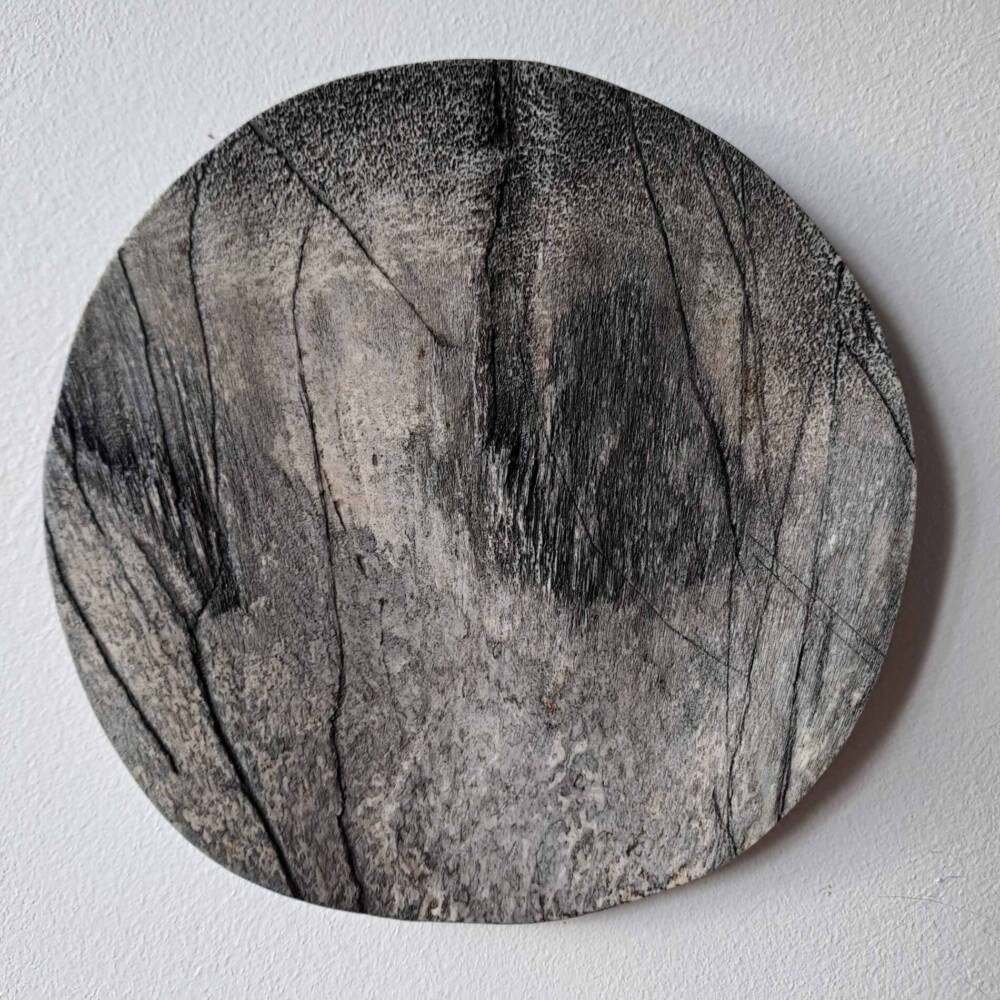 Pun between “estampe” (engraving) and “os” (bone) because of the aspect of this landscape, similar to one obtained with estampe technique, and the material, bone.