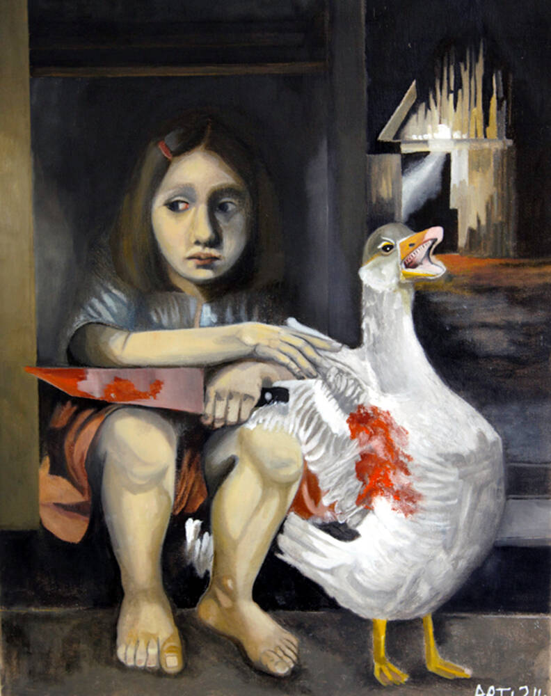 The goose’s scream adds horror, but also empathy — the painting becomes a shared cry between the child and the animal.