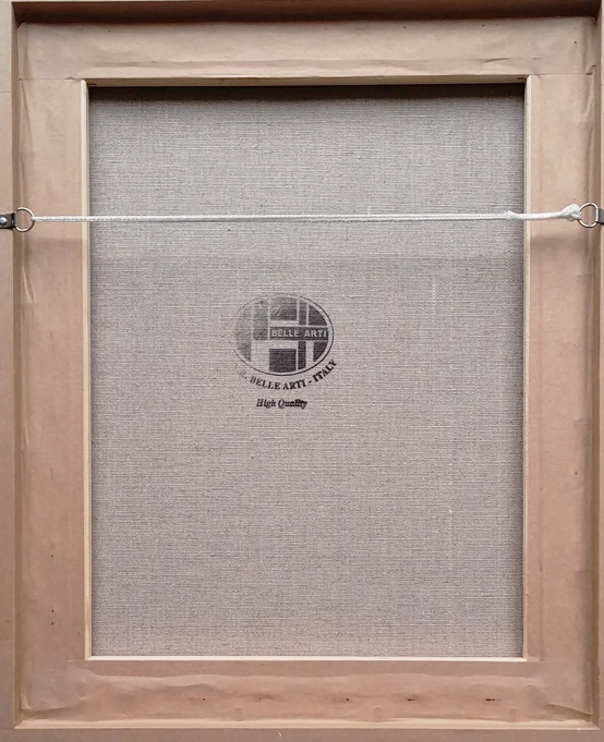 Art work comes with a white wooden block frame.