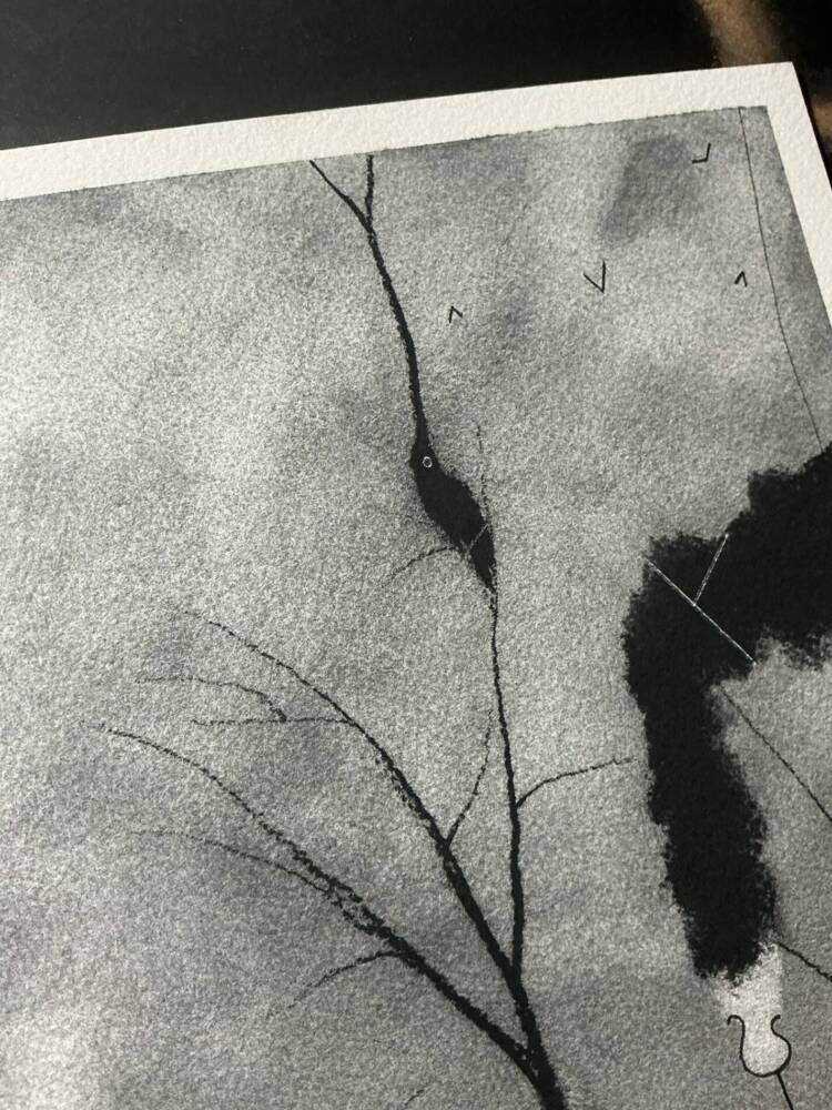 Ink, graphite and charcoal on 100% cotton paper. The size is 9×12, but please note, the size is slightly larger than 9×12 and will not fit a traditional 9×12 frame. Please consider matting for an 11×14 frame, or talk to your local framer for options.